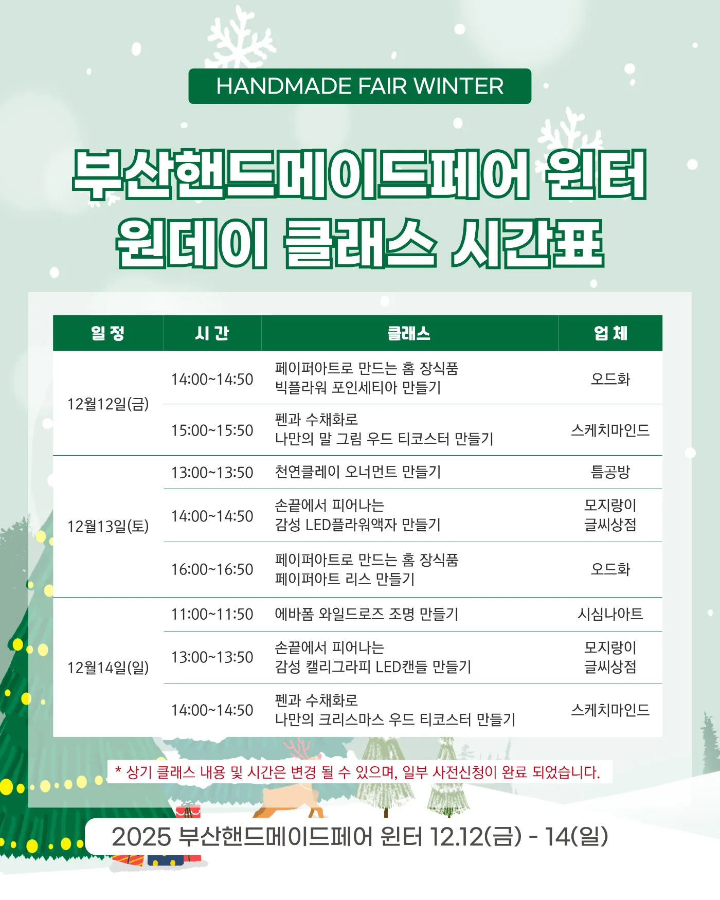 [2025 부산핸드메이드페어 윈터] 부핸페 원데이클래스 시간표 OPEN ✨