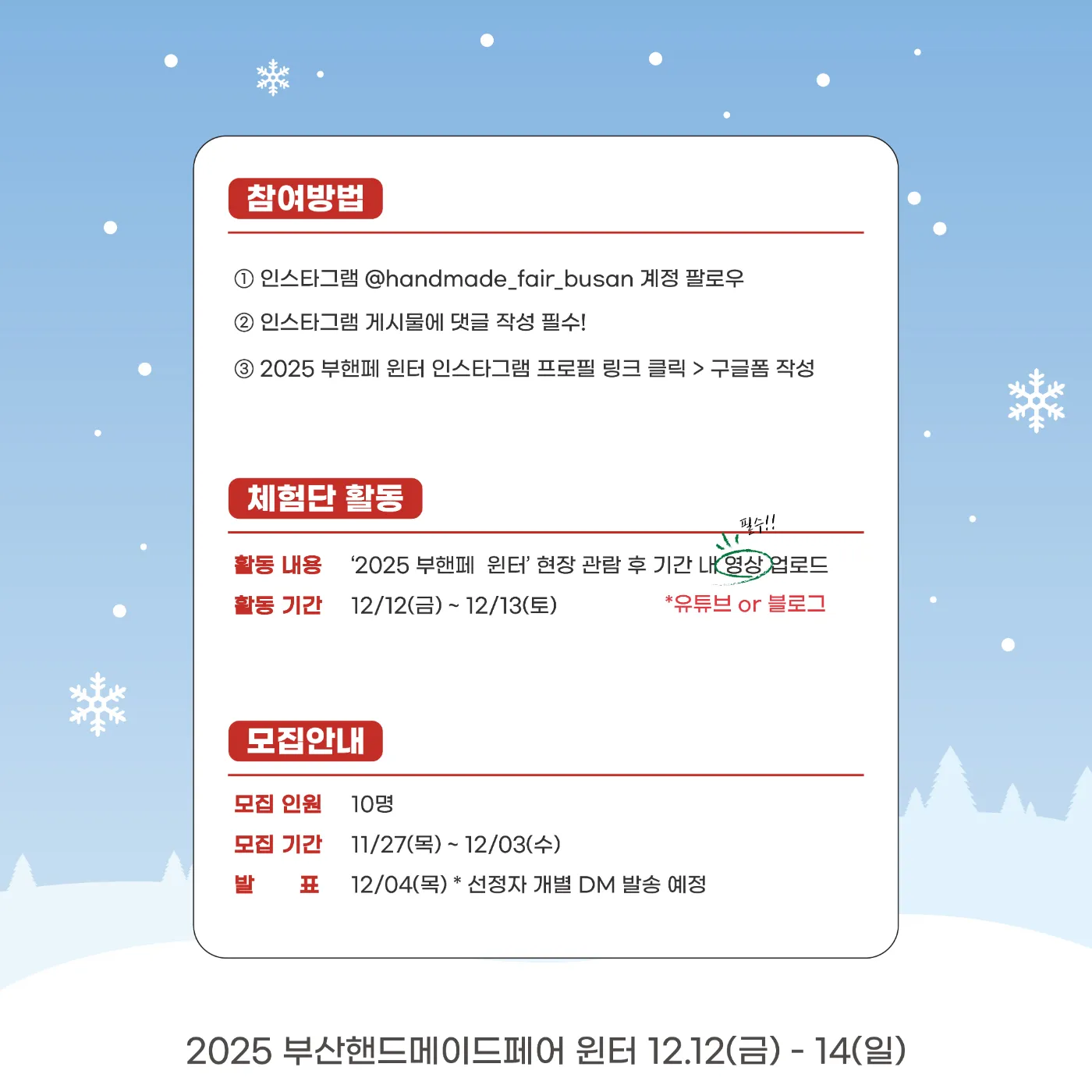 📢 2025 부핸페 윈터 현장체험단 모집안내